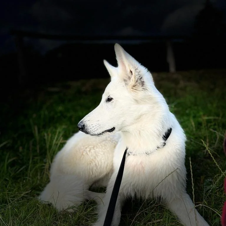 Nico ist eine 4 Jahre alte Langstock-Weißschäferhündin mit einem besonders warmen und ruhigen Charakter. Sie begrüßt Gäste und liebt Kinder. Besonders einzigartig an ihr ist, wie ruhig und geduldig sie ist. Sie bellt selten, hat aber ein wunderbares urzeitliches Heulen, wenn die Feuerwehrautos vorbeifahren. Dies ist ihr erster Wurf.